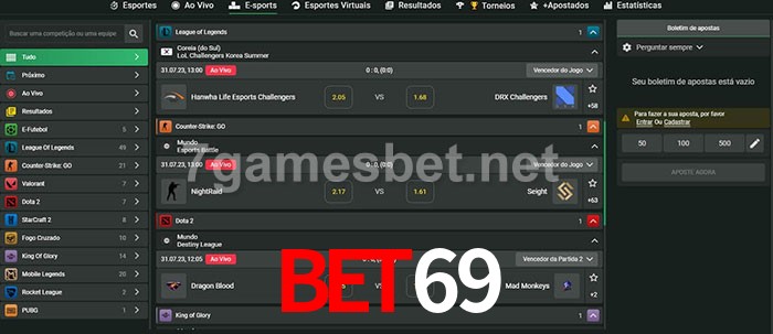 O bet69 oferece uma grande seleção de opções de apostas em e-sports com probabilidades competitivas